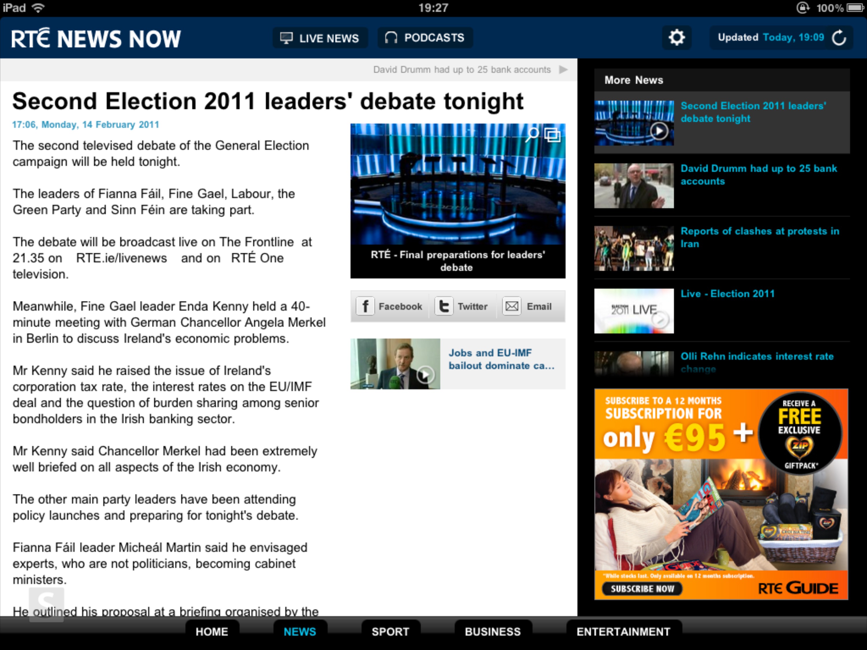 Stay up to date on all the latest irish national and international news with the rte news now app for iphone and ipad this free app offers all the latest headlines breaking news live news bulletins latest sport results entertainment updates audio video weather. Download rte news now and enjoy it on your iphone ipad and ipod touch.
